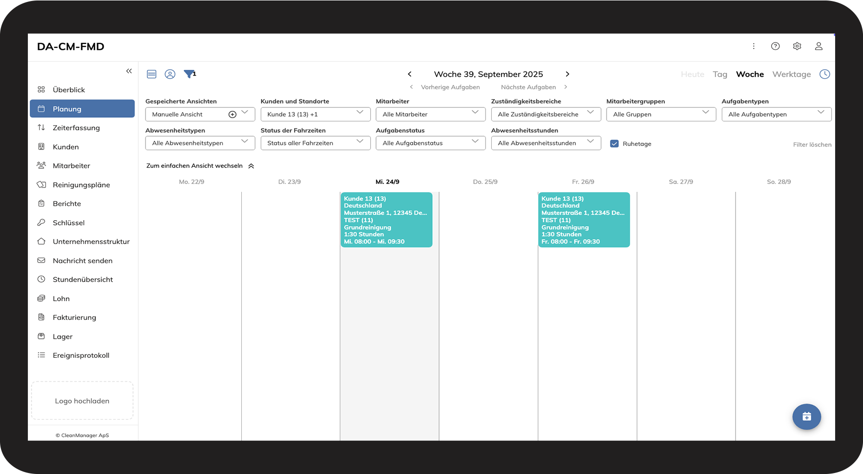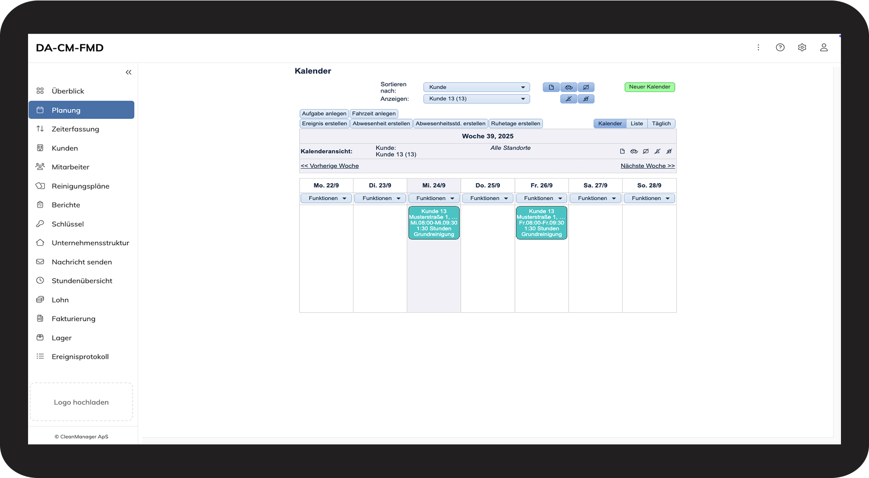 Als Administrator oder Service-Manager können Sie weiterhin zwischen dem Basiskalender und dem Kalender wählen, während Mitarbeiter und Kunden nur Zugriff auf den Basiskalender haben. Außerdem ist der Kalender nun in das System integriert und kann im selben Tab geöffnet werden, sodass das Menü und andere Funktionen jederzeit verfügbar bleiben. Der Administrator oder die Service-Manager können den Kalender weiterhin wie bisher in einem neuen Tab öffnen, indem sie auf den grünen Button „Neuer Kalender“ klicken.