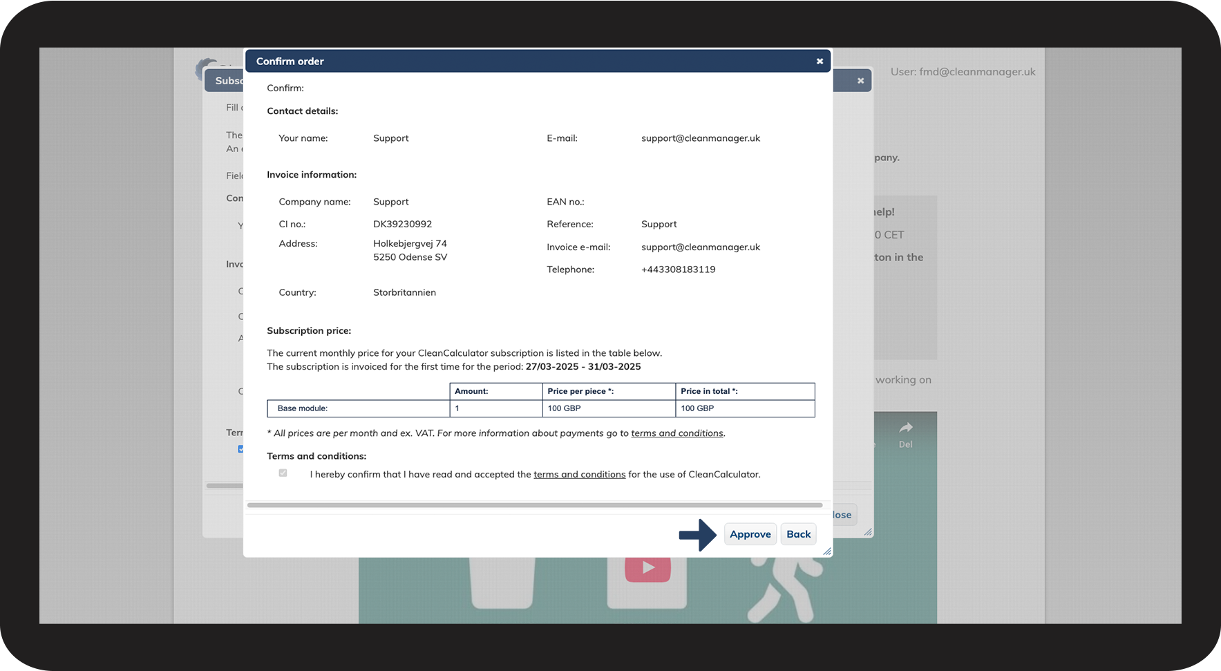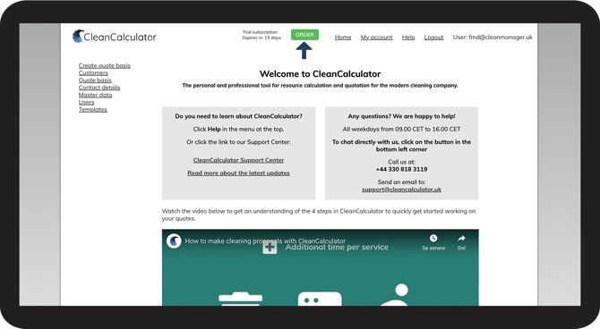 Once your CleanCalculator subscription is activated, we will reach out to schedule an onboarding meeting to help you get started with the system.