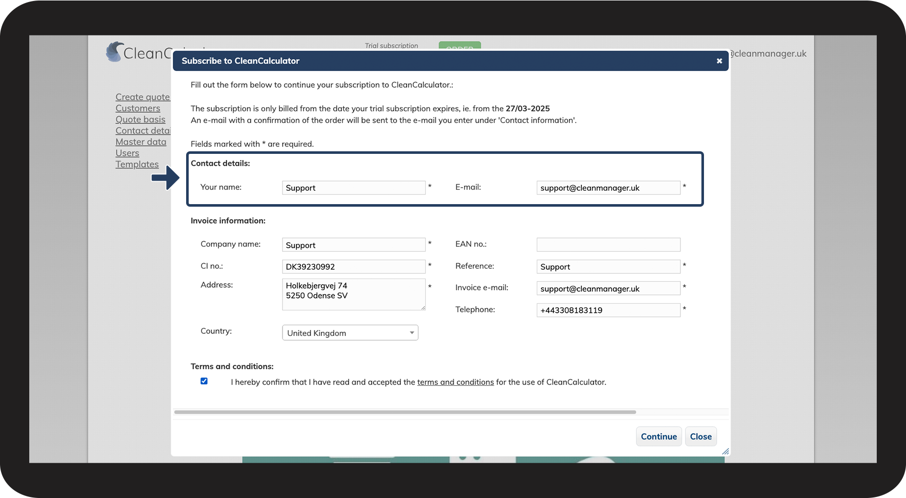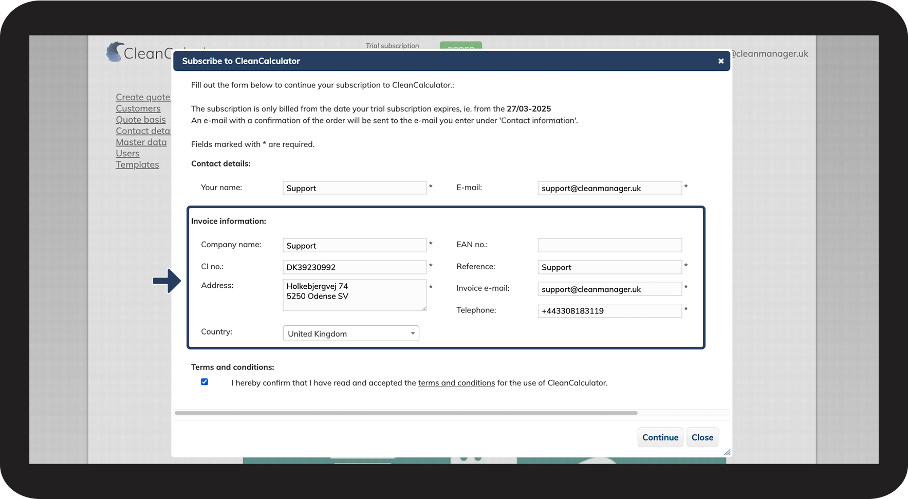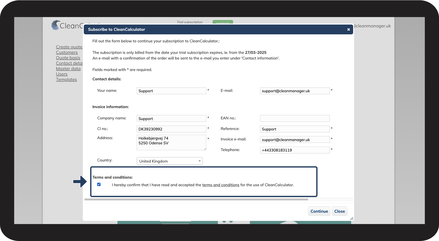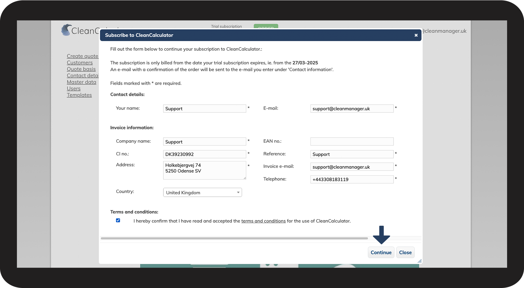 To start your CleanCalculator subscription, you first need to create a free trial.