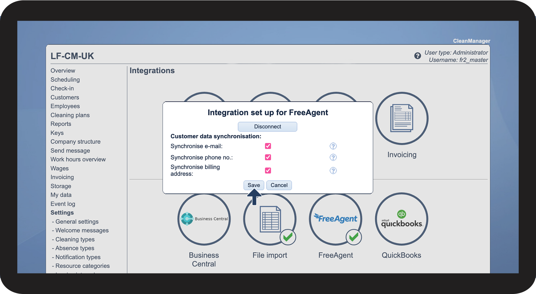 How to set up the integration between CleanManager and FreeAgent