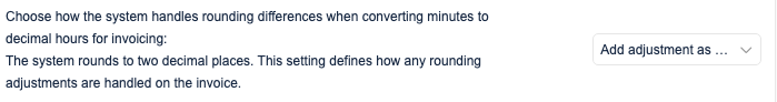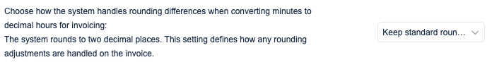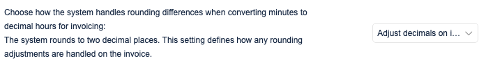 To make sure that the invoice always shows the most accurate total working time, you can now choose how the system should handle these rounding adjustments. The setting allows you to decide whether the rounding should be adjusted directly on the invoice lines, shown as a separate line on the invoice, or whether you want to keep the standard rounding.