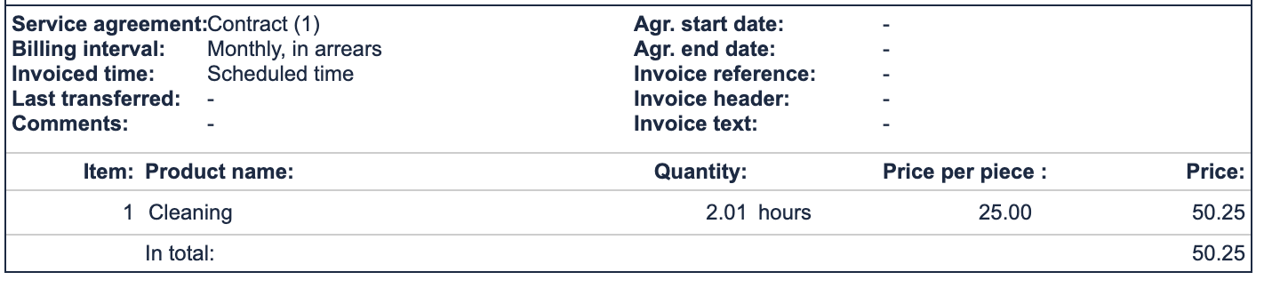 If this setting is enabled, a separate line on the invoice is automatically created for each cleaning type.