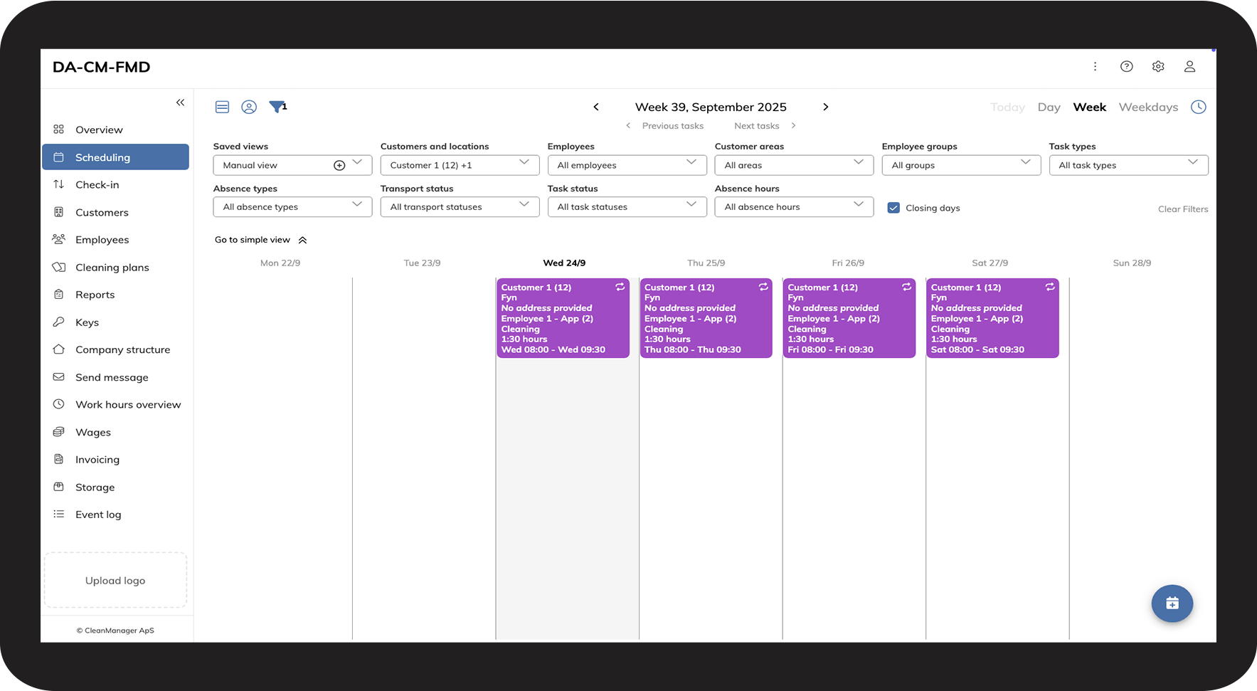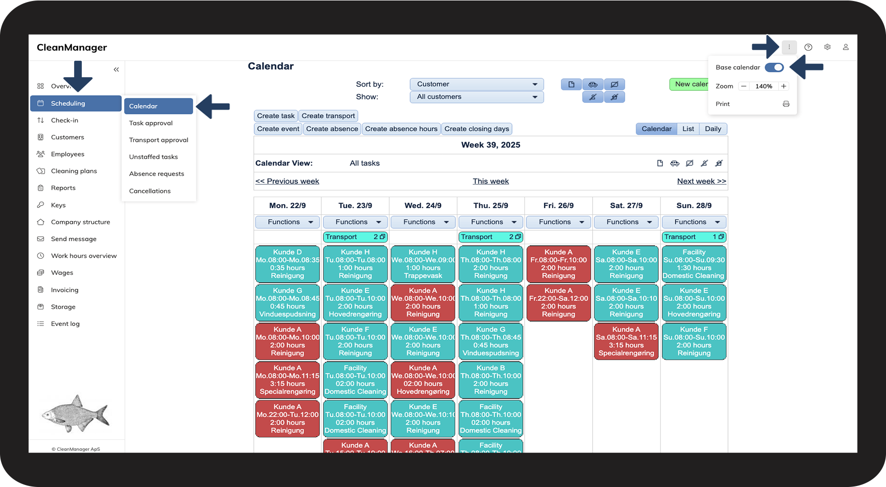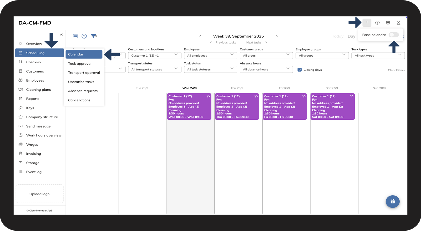 In CleanManager, you have the option as an administrator or supervisor to work with both the base calendar and the calendar.